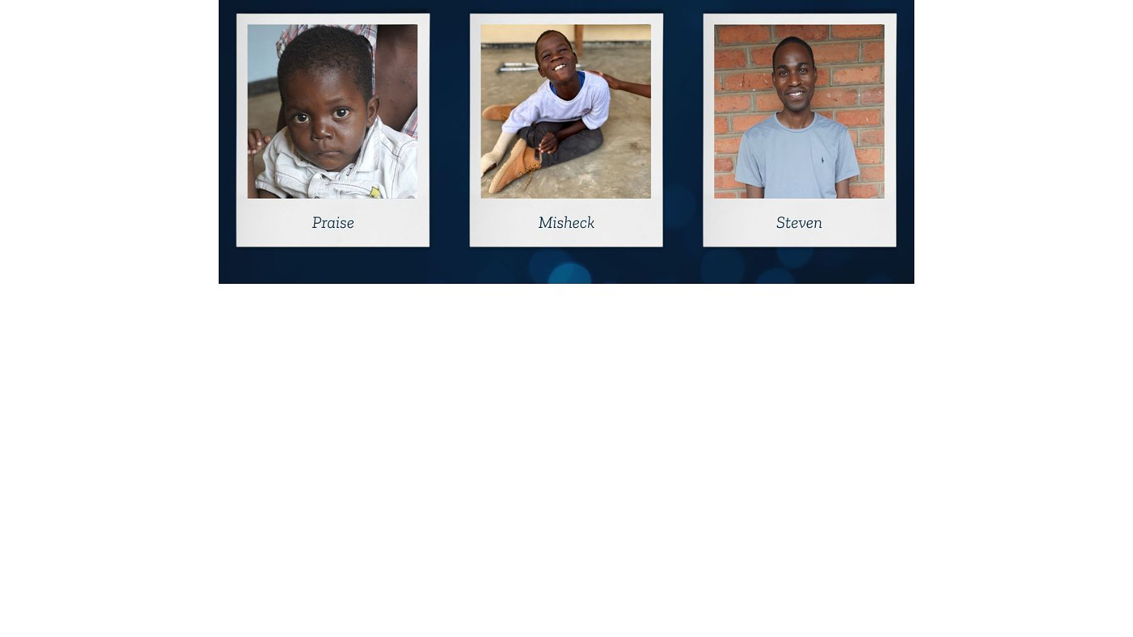 Misheck is an 11-year-old boy who came into our Champions program when he was just 4 years old! He is a beloved part of our family, and he has endured more surgeries than any little boy should have to go through. When we first met him, his mom carried him everywhere, and he spent his days lying on a mat. But through targeted exercises and surgeries, he is now walking with just a single crutch. He is currently recovering from a surgery, but the recovery is going slow. He is also more susceptible to illnesses after surgery. The doctors told us that he needs specific nutritional supplements to improve the healing process and strengthen his immune system. We’d like to provide that for at least a year. We can supplement Misheck’s diet with protein, supplements, and healthy foods for $65/month, or $780 for one year. We want to see him recover faster, become stronger, and prepare for his next surgery.